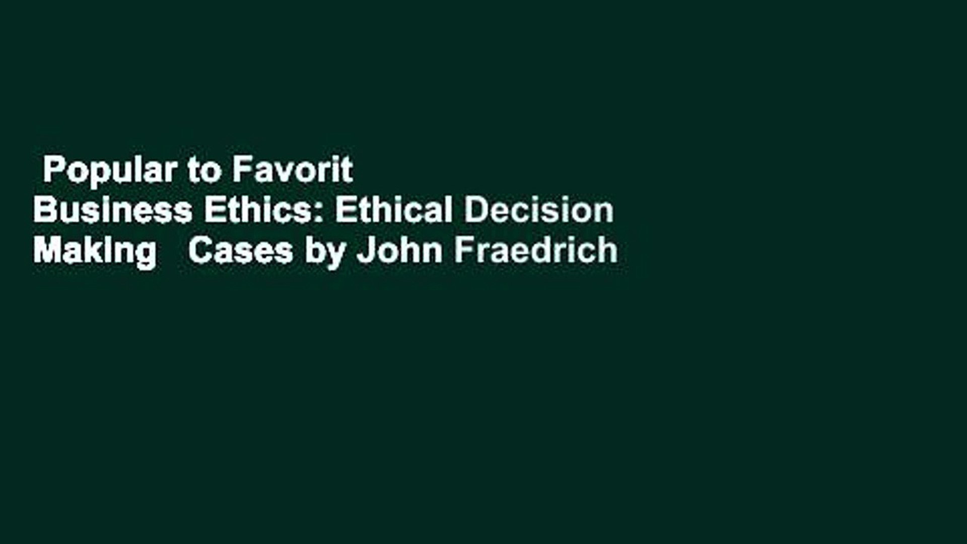 Not only that it also engenders satisfied stakeholders whether they be customers stockowners employees or the community in which a firm is located. Making good ethical decisions requires a trained sensitivity to ethical issues and a practiced method for exploring the ethical aspects of a decision and weighing the considerations that should impact our choice of a course of action. The book was published by the cengage learning in 1 st jan 2014. Ferrell john fraedrich and.