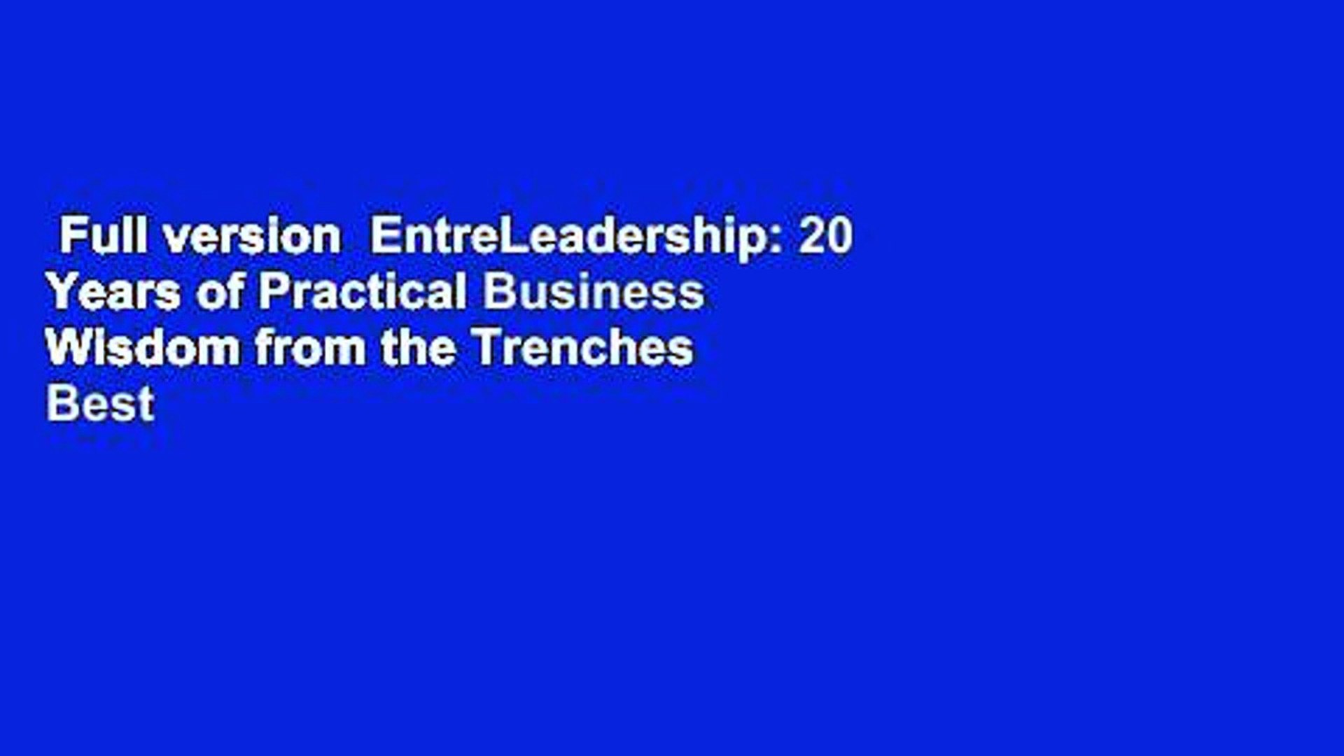 Entreleadership 20 Years Of Practical Business Wisdom From The