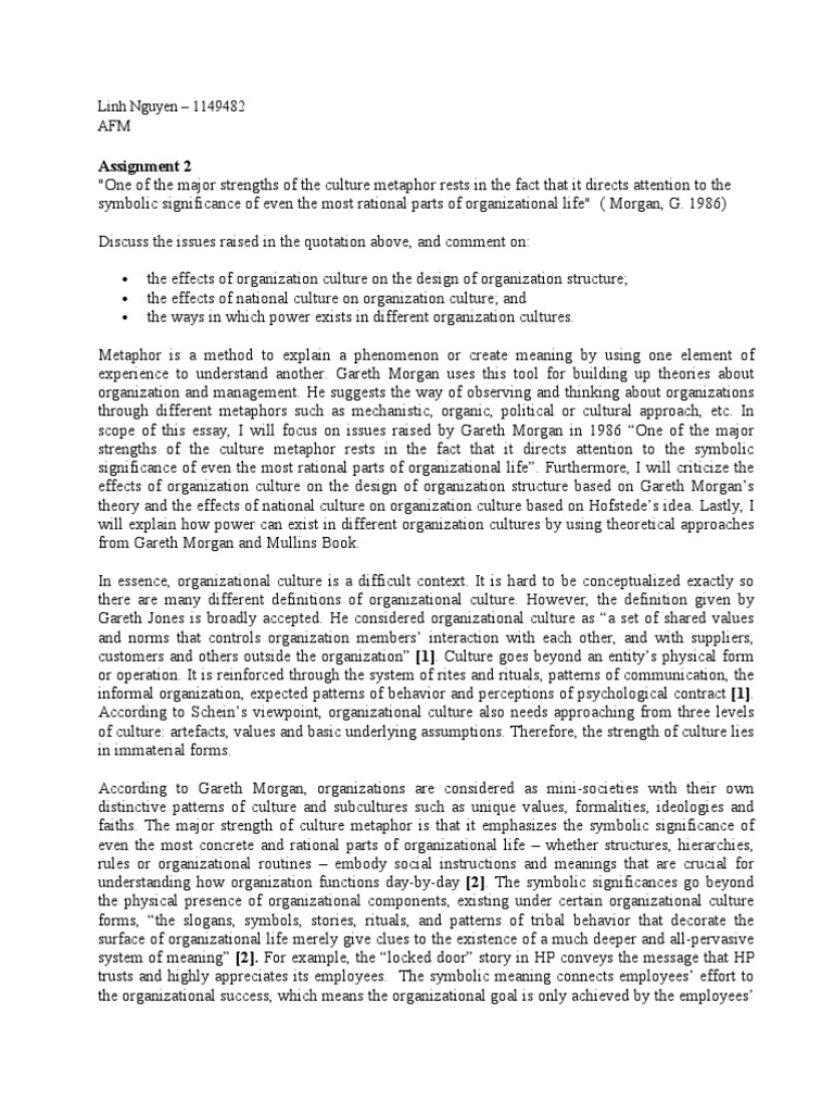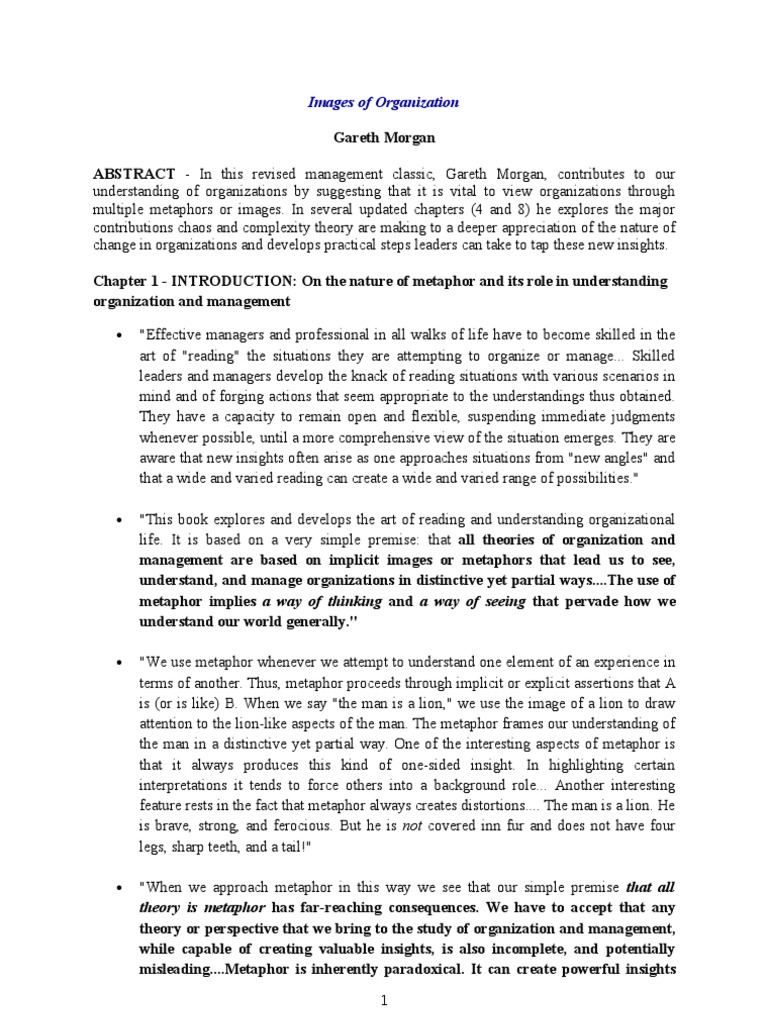 Pdf Morgan S Images Of Organizations Analysis