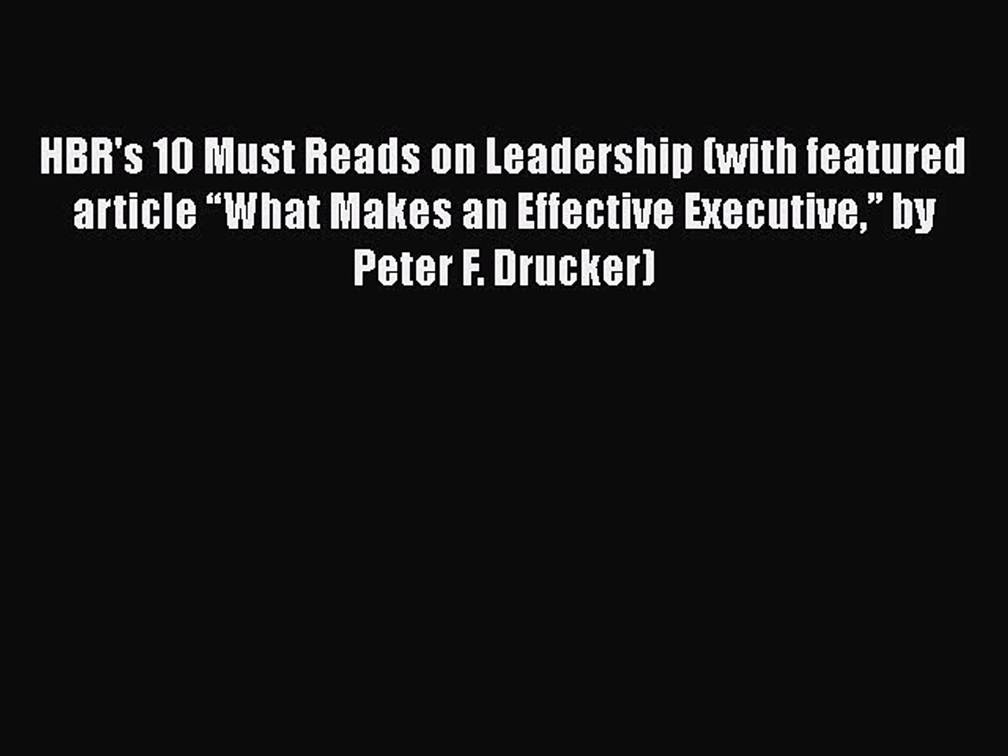Video Review For The Effective Executive By Peter Drucker Youtube