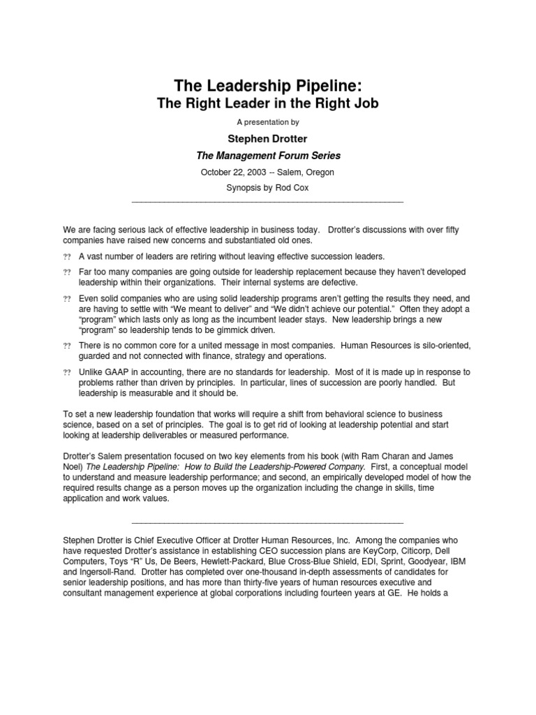 The Leadership Pipeline How To Build The Leadership Powered Company
