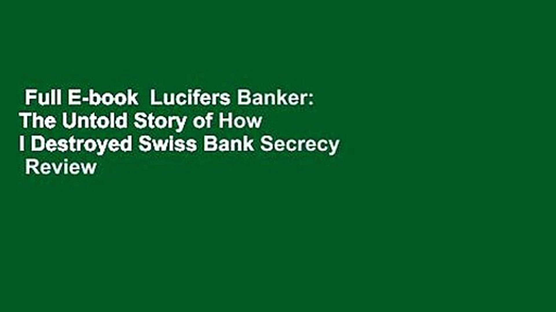 Lucifer S Banker The Untold Story Of How I Destroyed Swiss Bank
