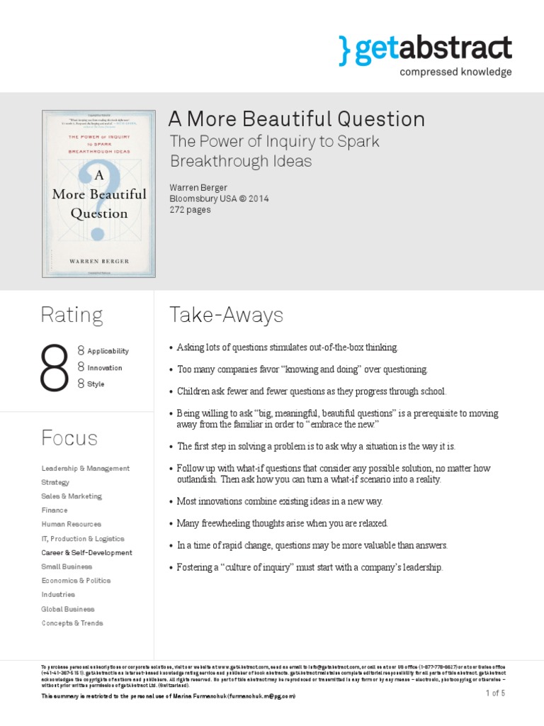 Read A Summary Of A More Beautiful Question The Power Of Inquiry