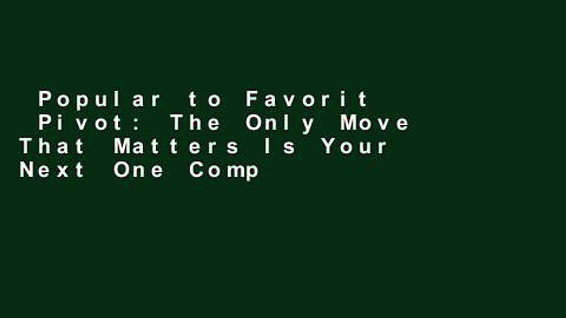 Pivot The Only Move That Matters Is Your Next One For Kindle