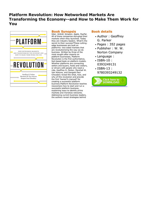 Read Epub Platform Revolution How Networked Markets Are
