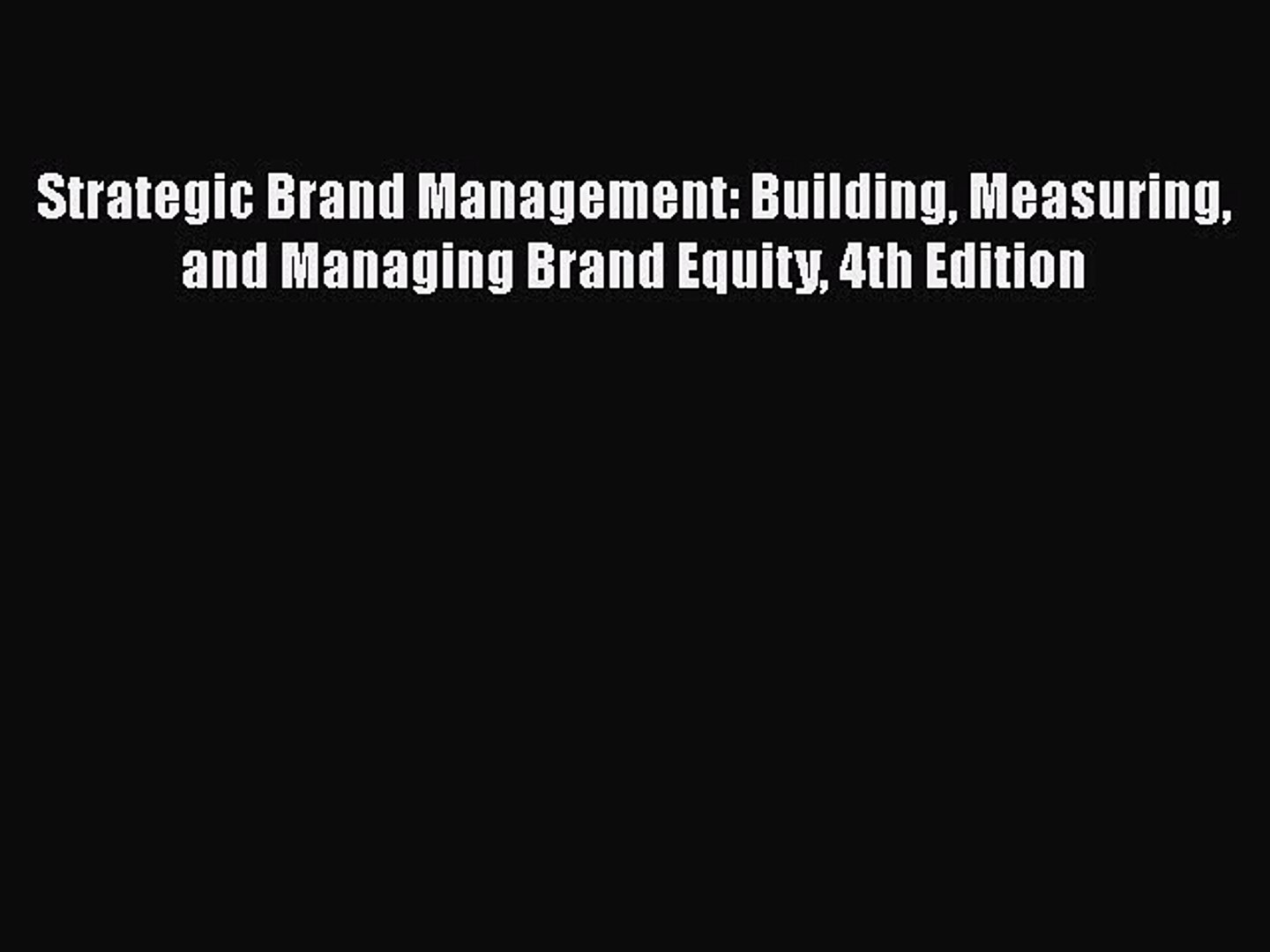 Strategic Brand Management Building Measuring And Managing Brand