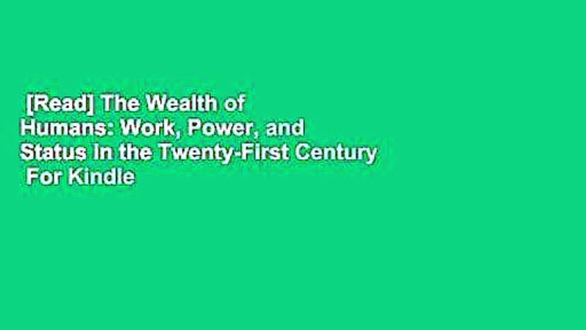 The Wealth Of Humans Work Power And Status In The Twenty First