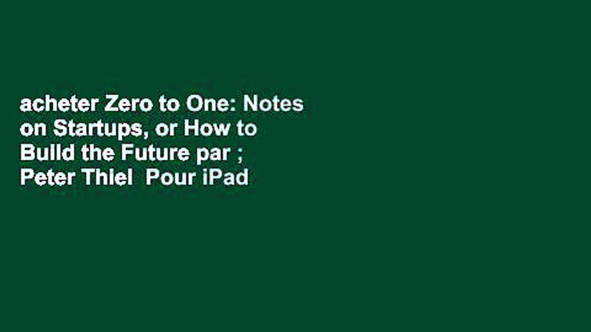 Zero To One Notes On Startups Or How To Build The Future Peter